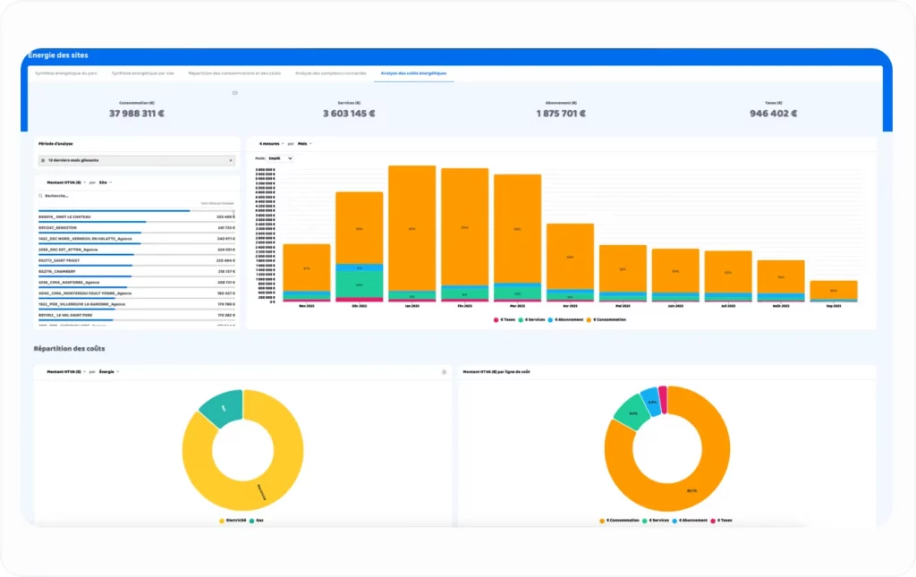 Toutes vos données de consommations sont présentées à travers des graphiques pertinents et adaptés aux métiers de l’énergie. Couplées à vos données patrimoniales, les algorithmes de Citron® ciblent les sites et les actions à mener pour répondre à votre stratégie énergétique.