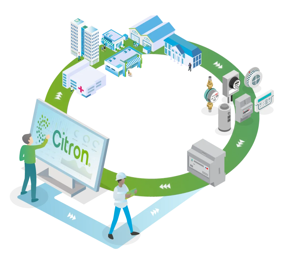 Citron® est votre outil de gestion de projet pour définir et mettre en place votre stratégie de réduction de vos consommations, du déploiement de vos objets connectés à la mise en place de vos actions de performance. En passant par l’amélioration continue :
