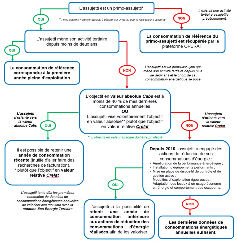 Pour les bâtiments, parties de bâtiments ou ensembles de bâtiments assujettis à l’entrée en vigueur du dispositif (1er Octobre 2019), cette année de référence est comprise entre 2010 et 2019. Elle peut correspondre également, par défaut, à l’année 2020 (Cf. 2ème alinéa de l’article 3 de l’arrêté du 10 avril 2020 : première année pleine d’exploitation dont les données de consommations énergétiques sont remontées sur la plateforme OPERAT).